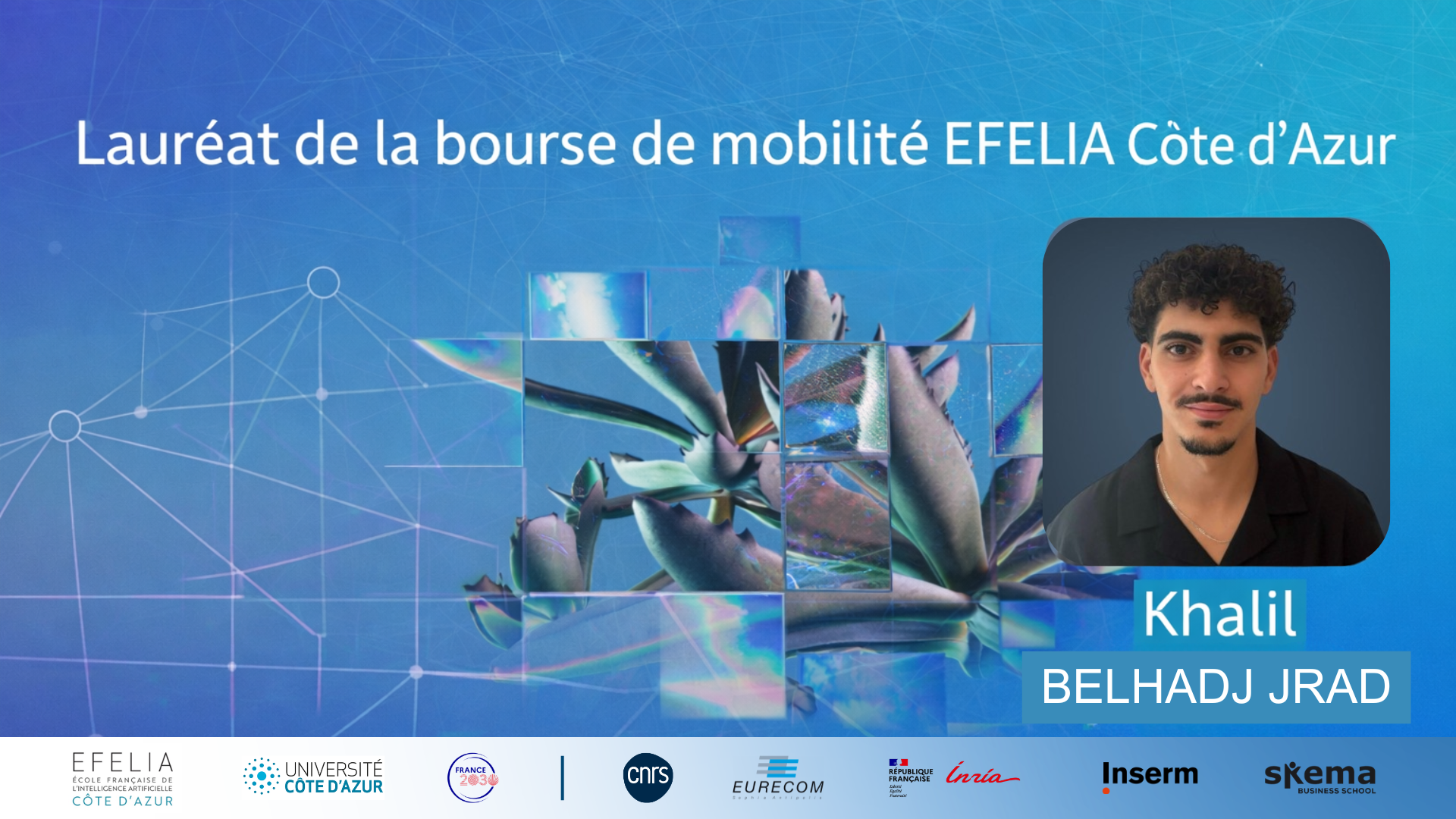 La bourse d’excellence EFELIA Côte d’Azur distingue chaque année une quinzaine d’étudiants de niveau Master engagés en intelligence artificielle. Elle accompagne des parcours à fort potentiel et soutient la mobilité internationale, en finançant stages, formations ou écoles d’été à hauteur de 2 000 euros par étudiant et par an.