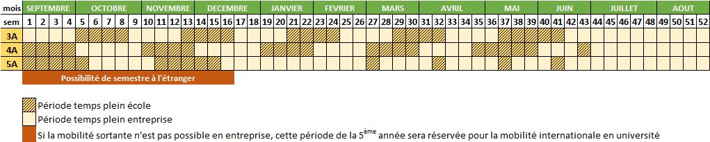 - Rentrée (début des cours) : fin septembre pour 3A , début septembre pour 4A et 5A